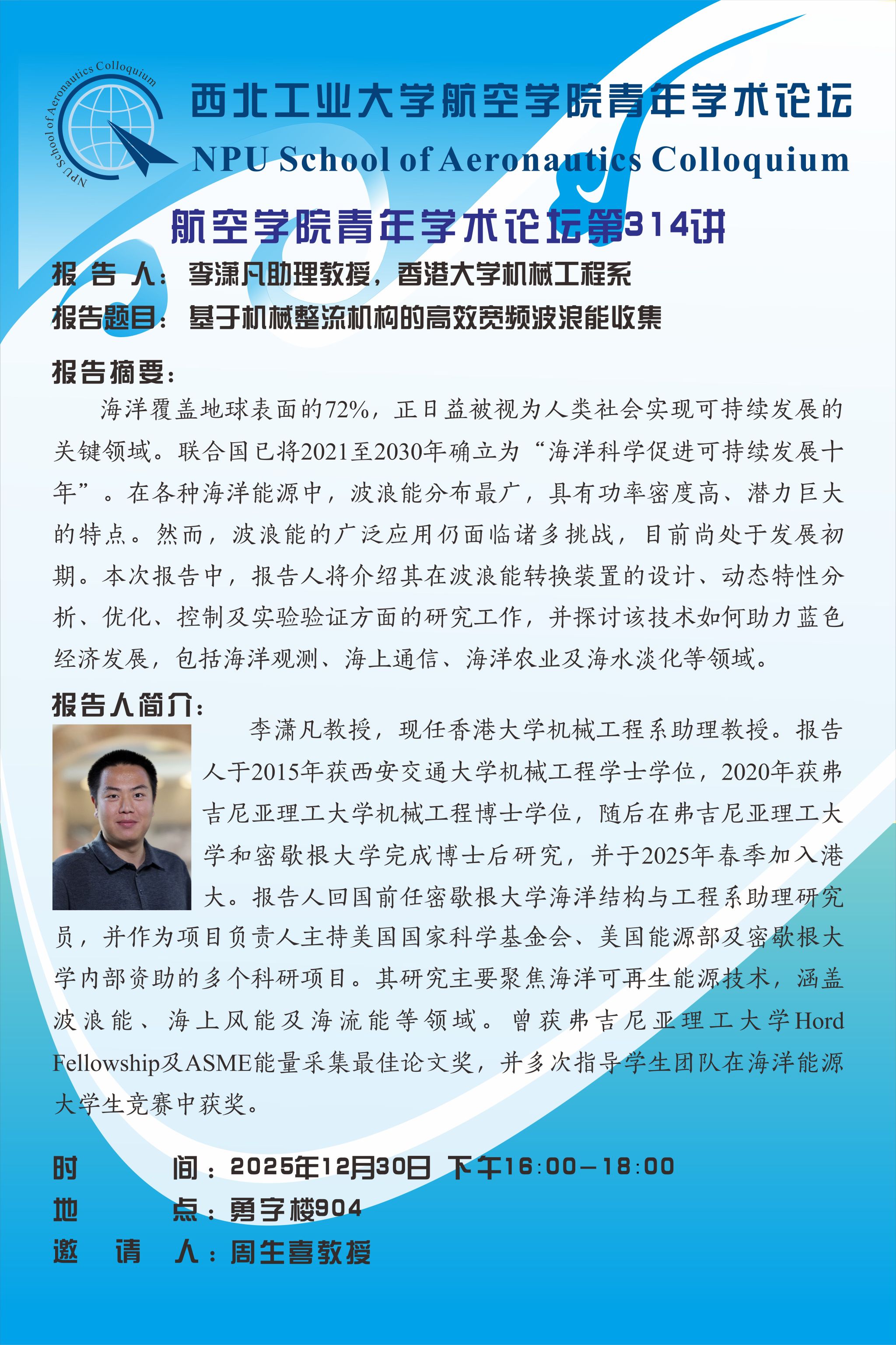【学术报告】李潇凡:基于机械整流机构的高效宽频波浪能收集