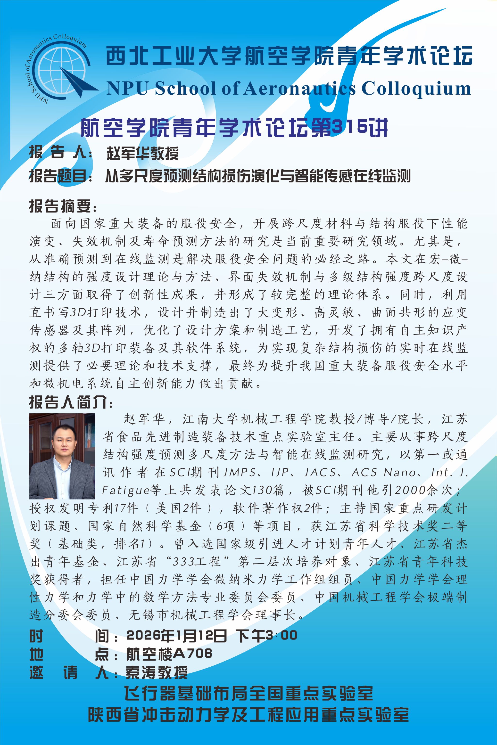 【学术报告】赵军华:从多尺度预测结构损伤演化与智能传感在线监测