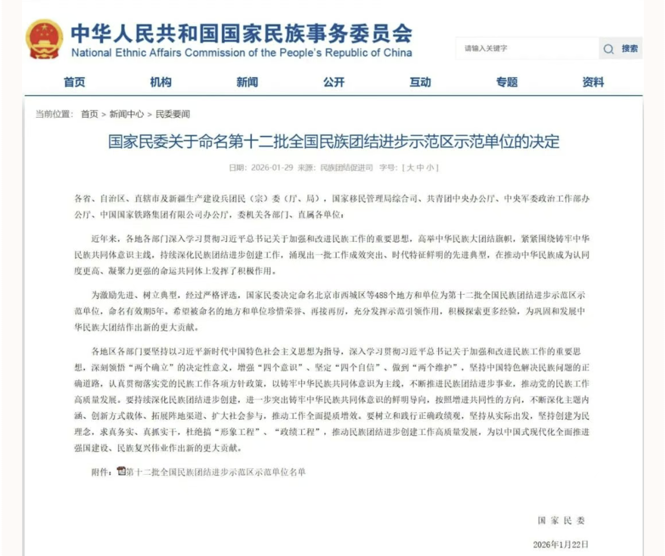 近日,国家民族事务委员会发布《国家民委关于命名第十二批全国民族团结进步示范区示范单位的决定》,我校党委学生工作部获批“全国民族团结进步示范区示范单位”,我校作为陕西省唯一获批高校,自2012年首次获批之后,再获此殊荣。