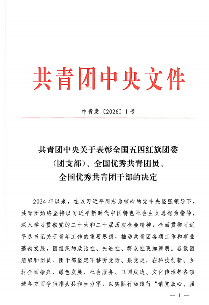 近日,共青团中央印发《共青团中央关于表彰全国五四红旗团委(团支部)、全国优秀共青团员、全国优秀共青团干部的决定》,学校团委荣获“全国五四红旗团委”称号。这一荣誉是共青团中央授予基层团组织的最高荣誉,也是学校继2016年获“全国五四红旗团委”称号后,时隔10年再次获此殊荣,充分彰显了上级团组织对学校共青团工作的高度认可,更是全校团员、团干部及各级团组织共同奋斗的成果。