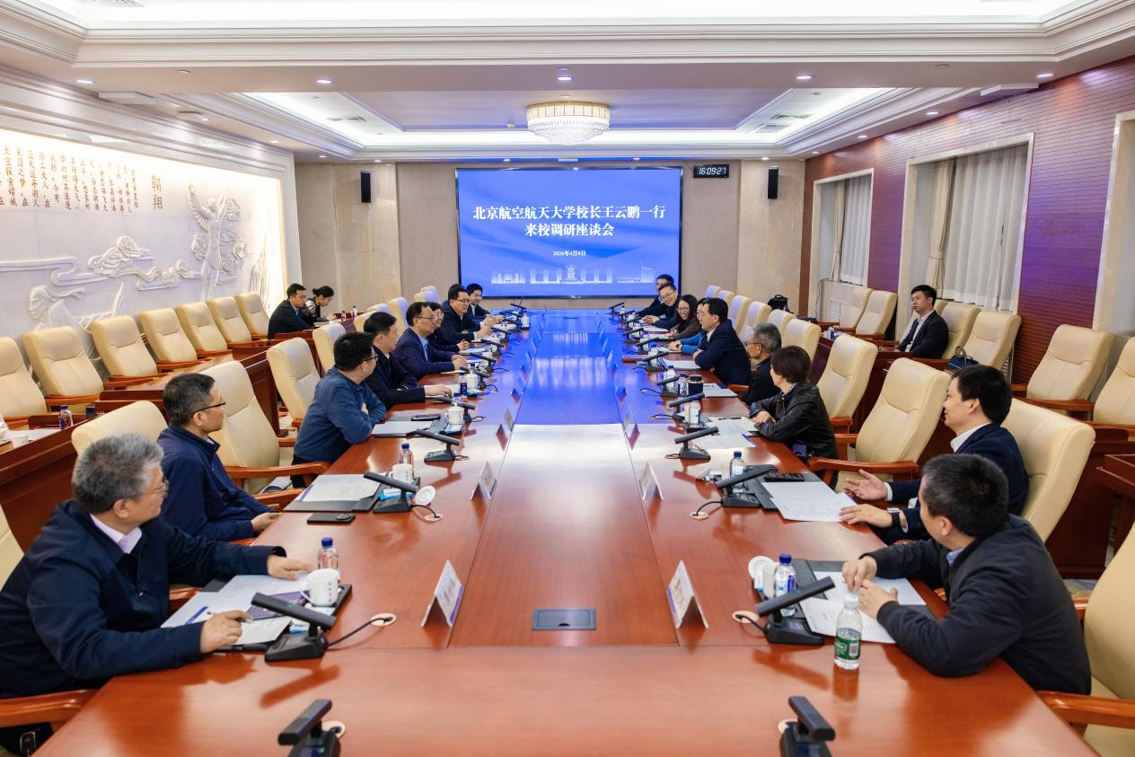 4月8日,北京航空航天大学校长王云鹏一行来校调研。校长宋保维与王云鹏一行进行会谈。北京航空航天大学教授、中国工程院院士王华明,副校长邓怡、校务委员会副主任张海兰,我校副校长张开富参加活动。座谈会由常务副校长张艳宁主持。
