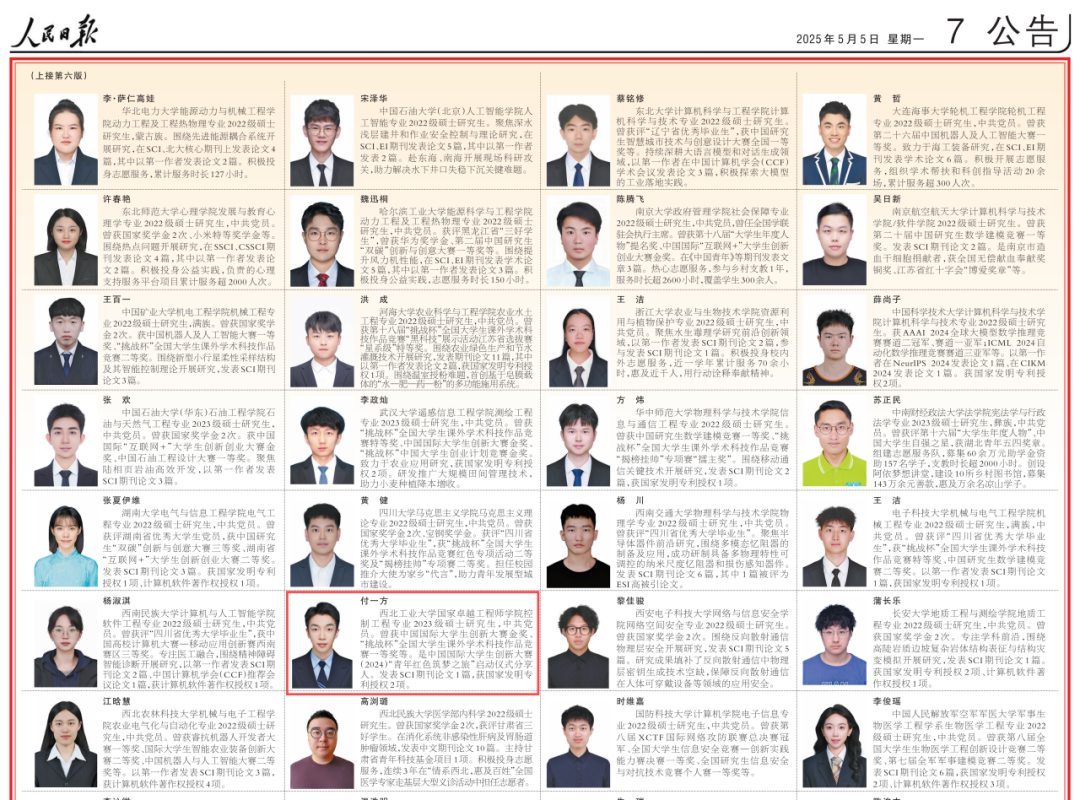 2023级硕士生付一方荣登《2024年研究生国家奖学金获奖学生代表名录》