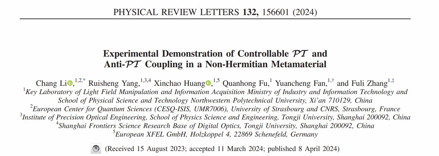 Phys. Rev. Lett. 132, 156601(2024) - Experimental Demonstration of Controllable PT and Anti-PT Coupling in a Non-Hermitian Metamaterial