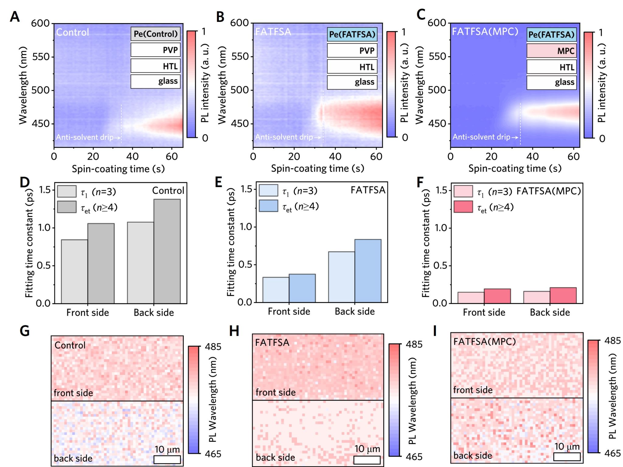 图3. 通过四氟丁二酸甲脒和双亲性分子调控钙钛矿低维相。
