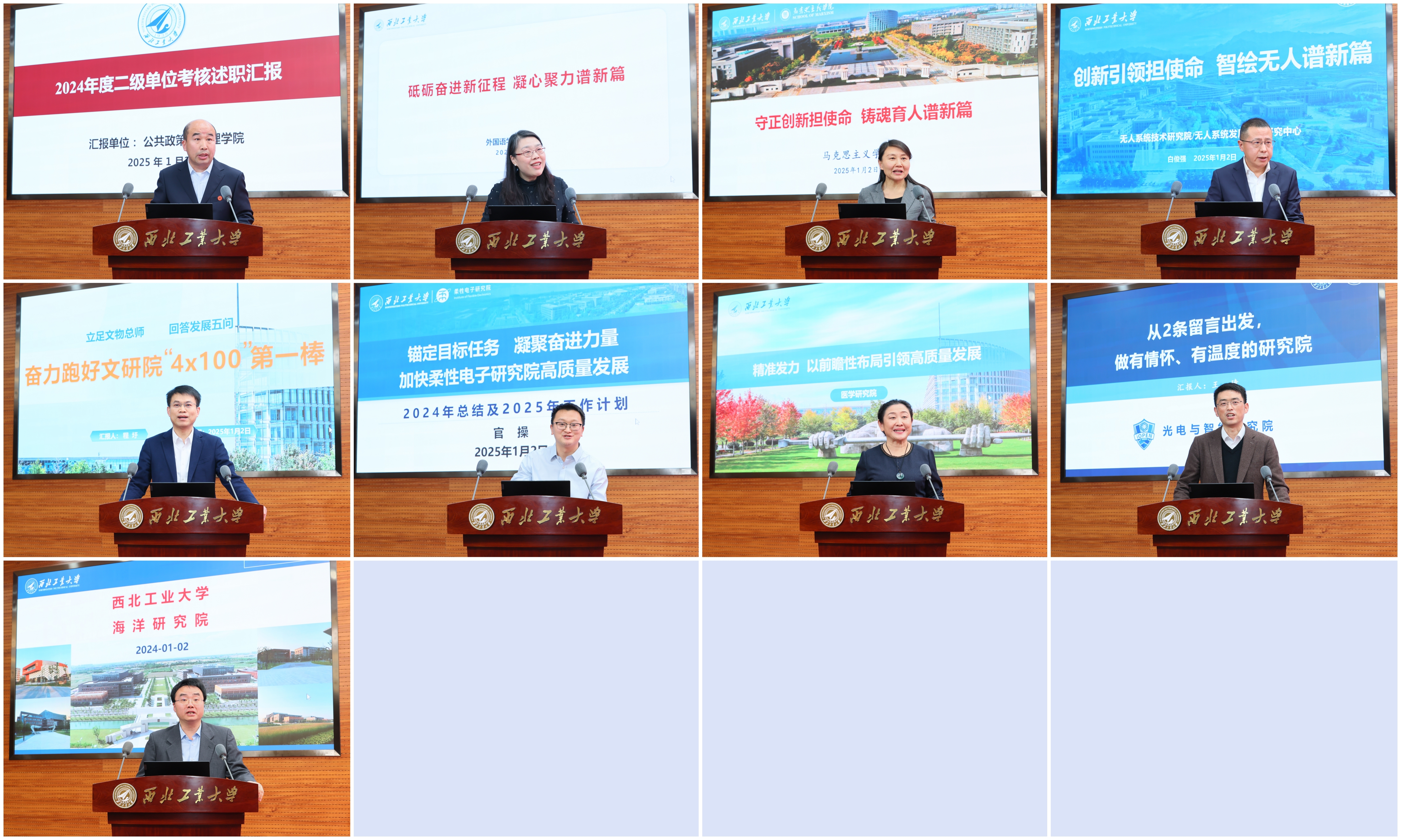 校内69个二级单位负责人和38位基层党委书记依次述职。各二级单位重点围绕目标责任制核心指标完成情况,重点从学科建设、人才培养、科学研究、师资队伍、国际交流等方面取得的成果以及事业发展情况、特色亮点,下一步努力方向进行述职。各基层党委书记重点围绕加强政治建设和作风建设、年度重点工作完成情况等方面进行述职。大家一致认为,2024年学校高水平召开第十四次党代会,确立了“天下工大、世界三航”远景目标和新“三步走”战略构想,聚势谋远、定向引航,全校上下“追求一流、追求卓越”的干事创业氛围浓厚,一年来学校各项事业发展取得了显著成效。大家纷纷表示,2025年将坚持永远在一线、永远在状态、永远在前列,为党育英才、为国铸重剑,奋力谱写中国特色世界一流大学建设新篇章,为强国建设、民族复兴作出新的更大的贡献!