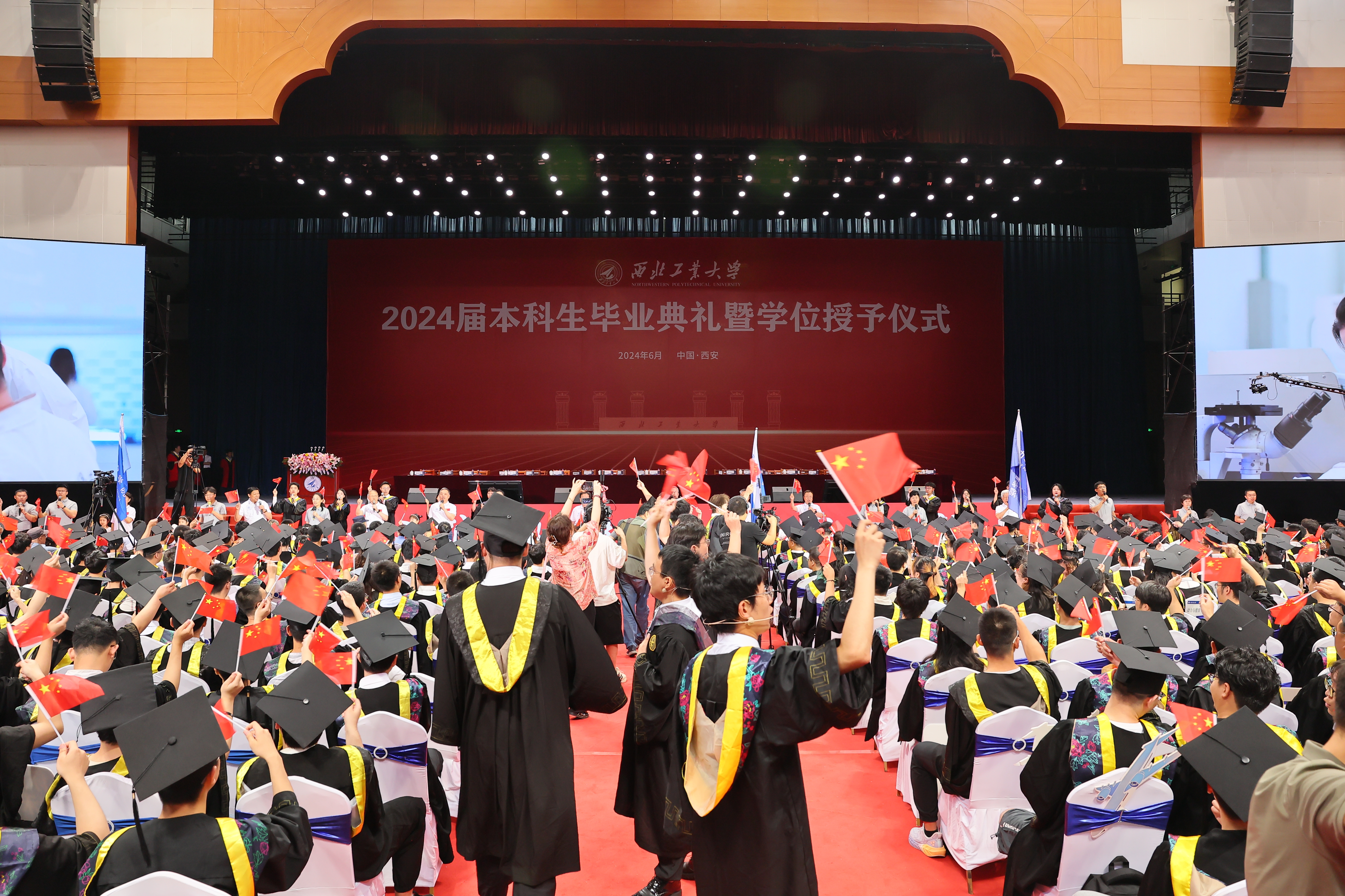 6月29日,西北工业大学2024届本科生毕业典礼暨学位授予仪式在长安校区翱翔体育馆隆重举行。4898名本科生圆满完成学业,在师长亲友的共同见证下,完成了在西工大的最后一课,开启了人生新的篇章。