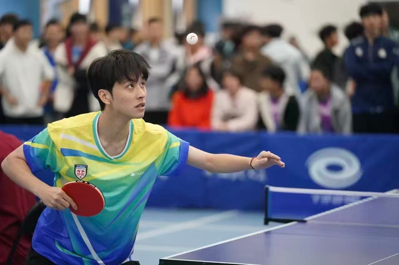 在混合双打项目中,面对两位现役健将级运动员,我校运动员毫无惧色,精心布局,最终在这场巅峰对决中勇夺金牌!女子单打项目中,队员杨行果在半决赛面对一位现役健将级运动员,双方战至决胜局,她顶住巨大压力以3:2艰难取胜,并在决赛中以3:0的绝对优势击败对手,将这枚极具分量的金牌收入囊中。男子单打赛场同样激烈,队员杨新浩在决赛中与国家队队员费浚航狭路相逢,在鏖战五局后,杨新浩最终以2:3的微弱差距惜败,屈居亚军。在团体赛和双打项目中,西工大队员们同样展现了强大的团队凝聚力,女子双打霸气包揽冠亚军;男、女团和男子双打均在激烈竞争中拼得奖牌。