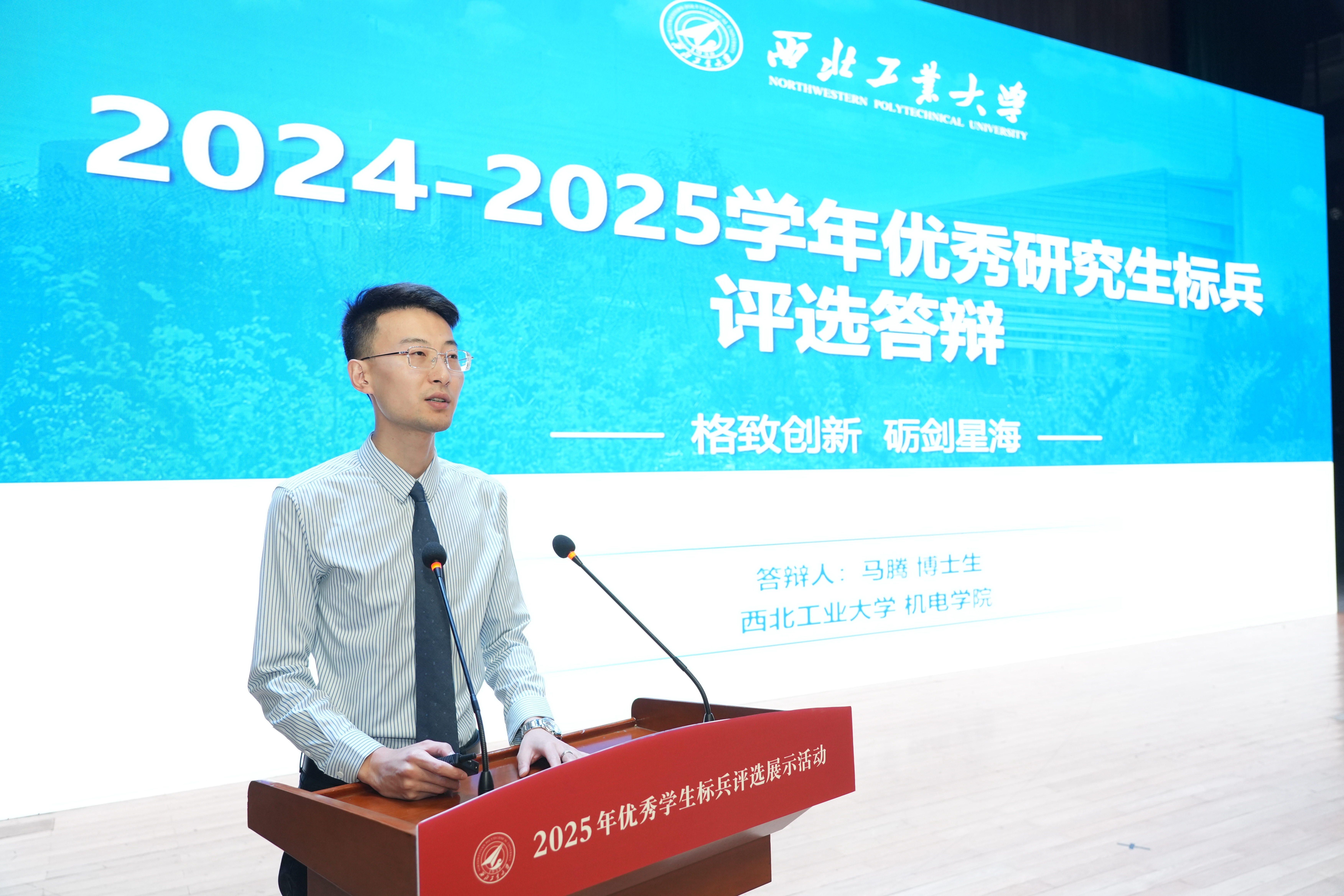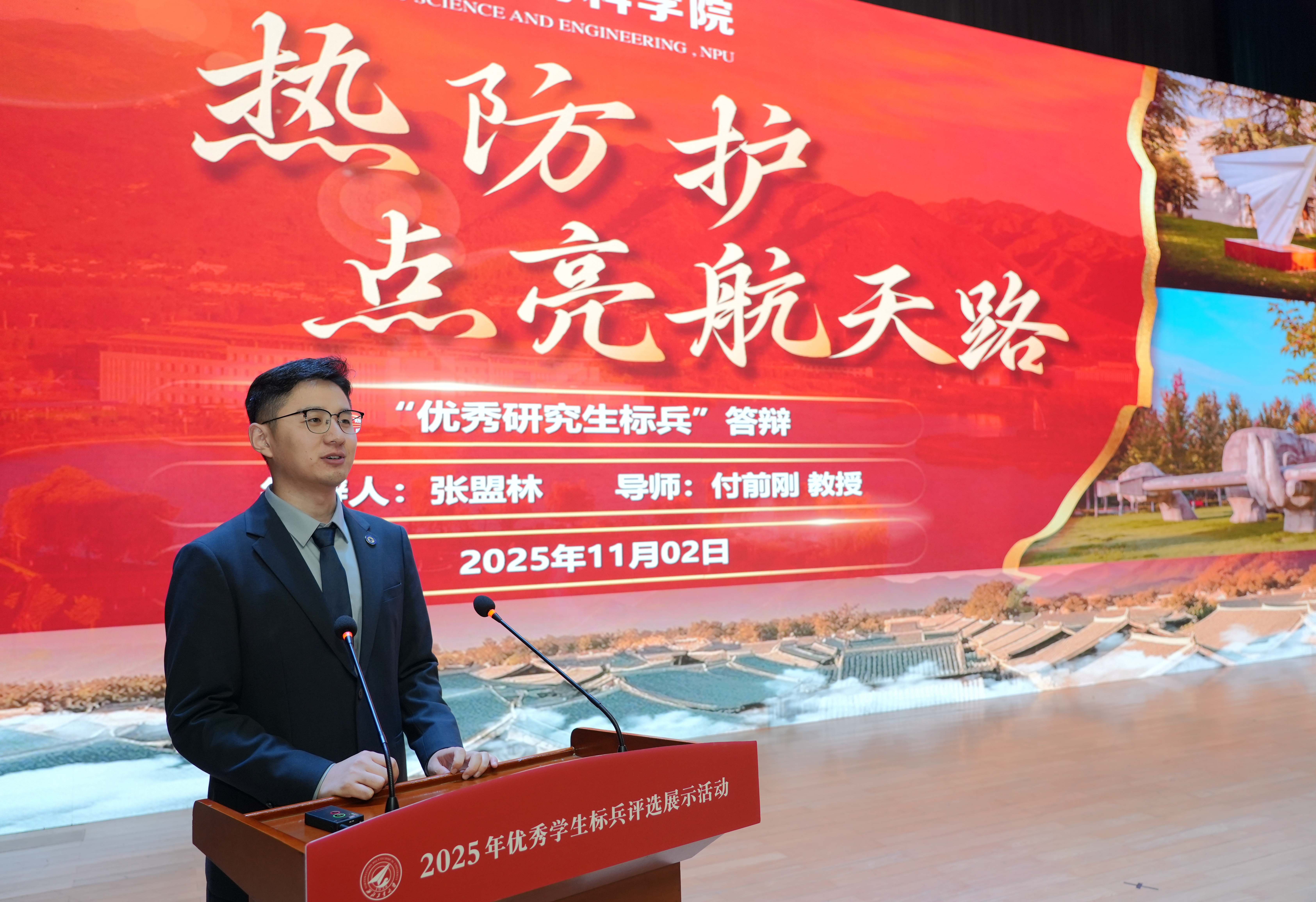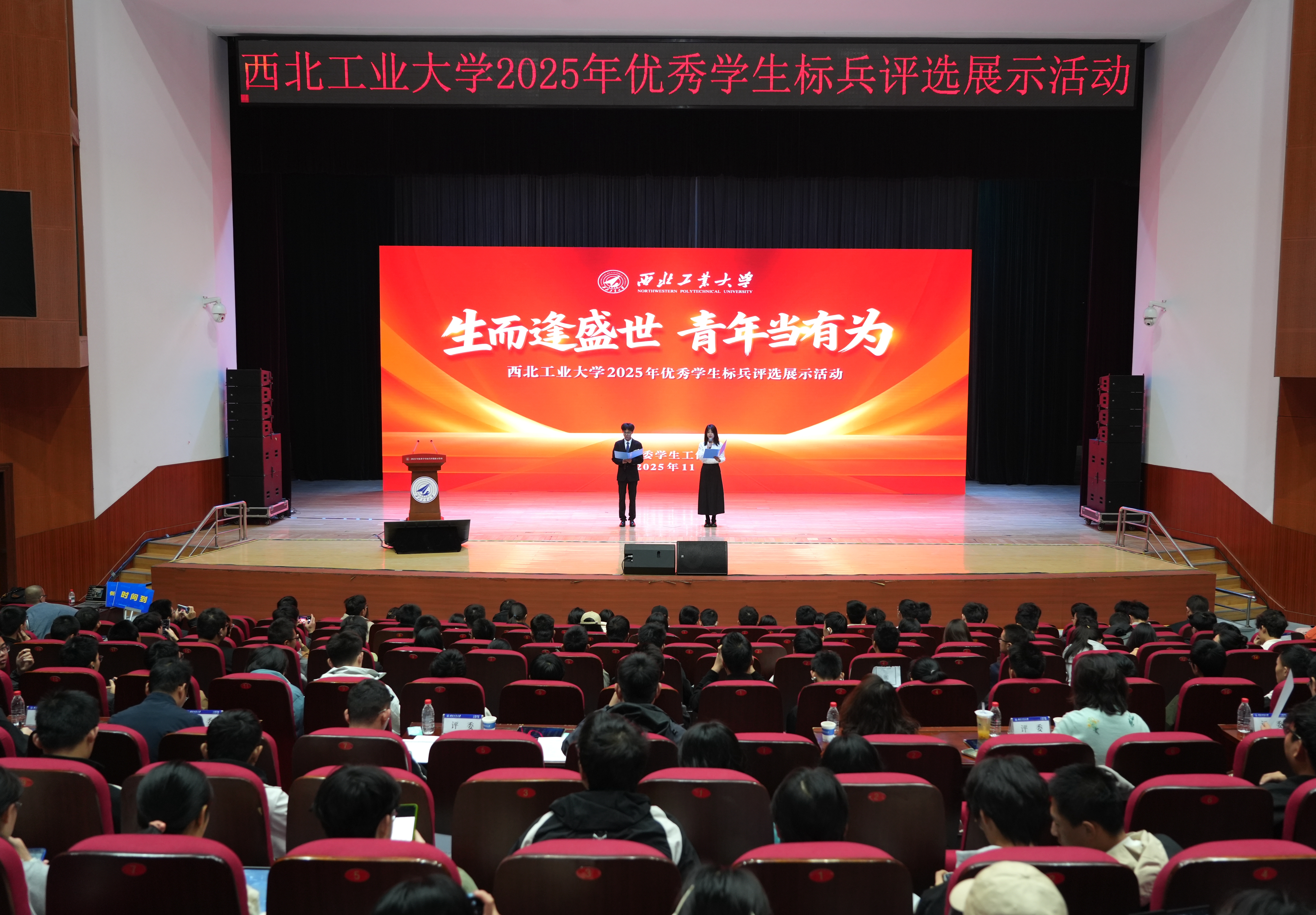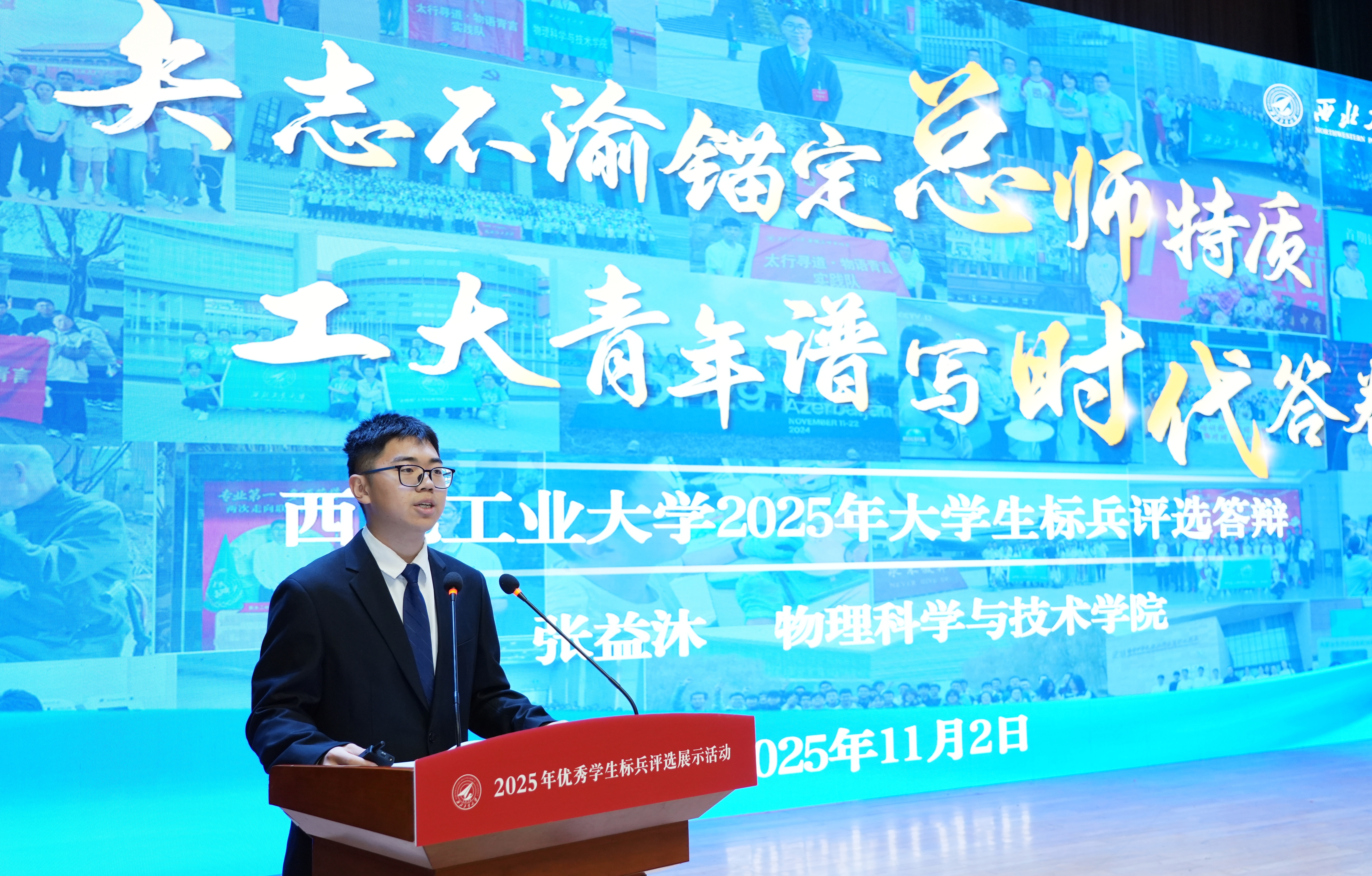 2025年11月2日,长安校区翱翔学生中心内掌声频传,我校2025年优秀大学生标兵与优秀研究生标兵答辩评审会在此火热开展。来自省内外的评审专家、各培养单位副书记、辅导员以及近千名学生观众齐聚一堂,聆听52位候选人对标“总师型”人才培养特质,多维发力、全面发展的成长故事,感受西工大学子将个人发展与国家战略需求相结合,在拼搏中奋进的精神风貌。