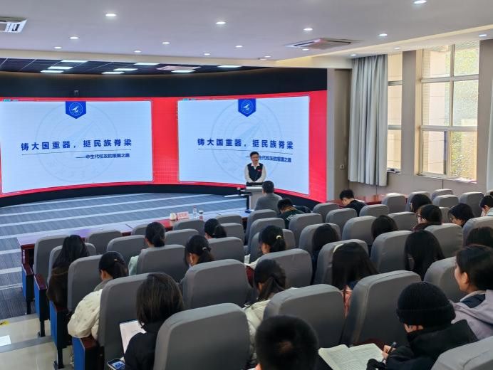 王宇波以“为谁培养人、培养什么人、怎样培养人”的教育根本问题为开篇,从“古路坝灯火”救国初心切入,深情讲述师昌绪、陈士橹等老一代院士“科技救国”“科技强国”壮举;精准聚焦唐长红、陈勇等中生代校友铸大国重器的使命担当;细致讲解尹东、唐勇等新生代校友的强国实践。他通过“一个甲子的坚守”“史上最牛航空班”等一个个感人故事与动人细节深度解读人才培养的“西工大现象”,为同学们展现了我校在不同时期为党育人、为国育才的生动实践,勾勒出西工大人才培养传承图谱。他勉励同学们要将“公诚勇毅”“三实一新”的校训校风融入自己的成长生涯,结合马克思主义学院的专业特色,脚踏实地、潜心探索、大胆尝试、全面成长,在全面建设社会主义现代化国家的新征程上书写出新时代青年学生的青春篇章。