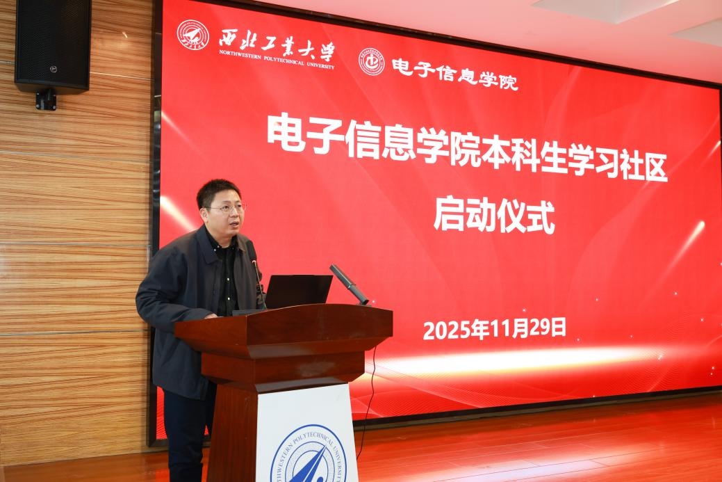 侯俊首先代表电子信息学院向出席活动的领导、老师致以热烈欢迎,向成功加入学习社区的同学们表示诚挚祝贺。他指出,学院依托优质教学与科研资源组建学习社区,既是深化教育教学改革的关键探索,更是落实“立德树人”根本任务、培育电子信息领域拔尖创新人才的重要举措,承载着学院对人才培养的初心使命,以及同学们对成长成才的殷切期盼。