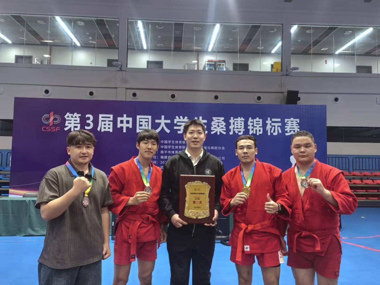 当力量与技巧碰撞,当热血与信念交融,全国大学生桑搏锦标赛的赛场注定燃势非凡!近日,全国大学生桑搏锦标赛在福建武夷山热血开赛,来自全国各地的高校劲旅齐聚一堂,在赛场上展开力量与技巧的巅峰对决。我校摔跤柔道队在郑帅老师的带领下奋勇出征,以昂扬之姿出战,最终斩获2金3银1铜的优异战绩,同时获得大赛男子团体第二名、赛会总分团体第三名,充分彰显西工大学子的体育竞技实力与团结奋进的精神风貌!