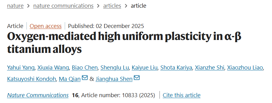 钛合金作为航空航天、医疗等关键领域的核心材料,长期面临屈服强度与均匀塑性难以兼顾的难题——强度提升往往伴随塑性急剧下降,成为制约其性能升级的核心瓶颈。近日,西北工业大学航空学院沈将华教授团队联合澳大利亚皇家墨尔本理工大学马前教授等国际团队在 α-β 钛合金设计领域取得重大突破,相关成果已被《Nature Communications》正式发布。