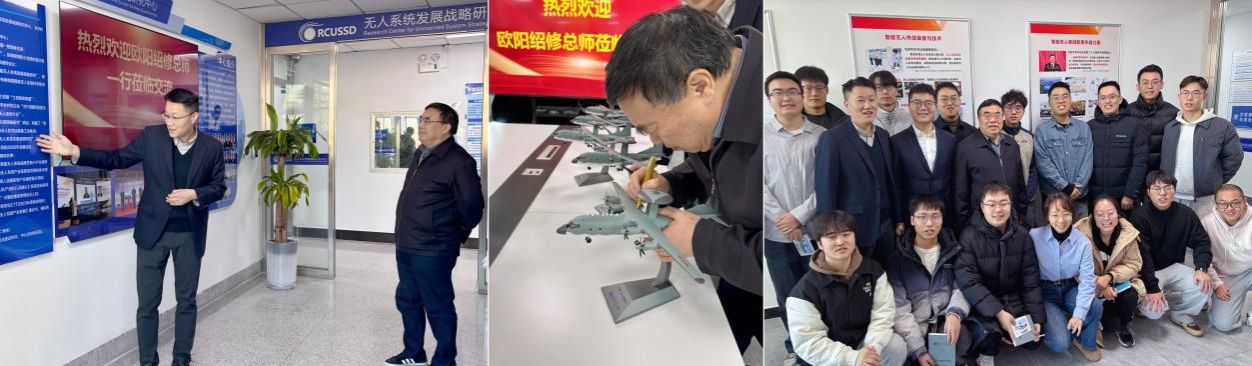 1月9日,欧阳绍修参观了无人系统发展战略研究中心,对智库建设成果给予高度评价,向师生介绍了预警机及运输机研制的艰辛历程。