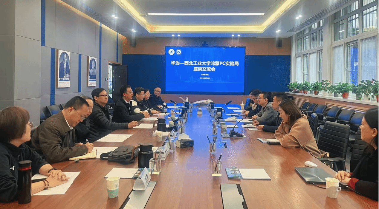 近日,华为—西北工业大学鸿蒙PC实验局2026春季交流座谈会在长安校区计算机学院105会议室举行。华为终端全球生态发展部副总裁李剑南,陕西、宁夏、湖北省鸿蒙发展代表韦兴君,陕西省终端政企业务部长覃钰珩,政企经理张雪芳一行来访我校,计算机学院副院长郭斌、航空学院副院长万方义、信息化管理处副处长张文生、计算机学院基础教学与实验中心主任姜学锋及计算机学院、自动化学院骨干教师,大学生程序设计创新实践基地鸿蒙开发团队学生代表共同参会。双方围绕鸿蒙实验局建设、鸿蒙人才培养及产学研合作展开深度交流。