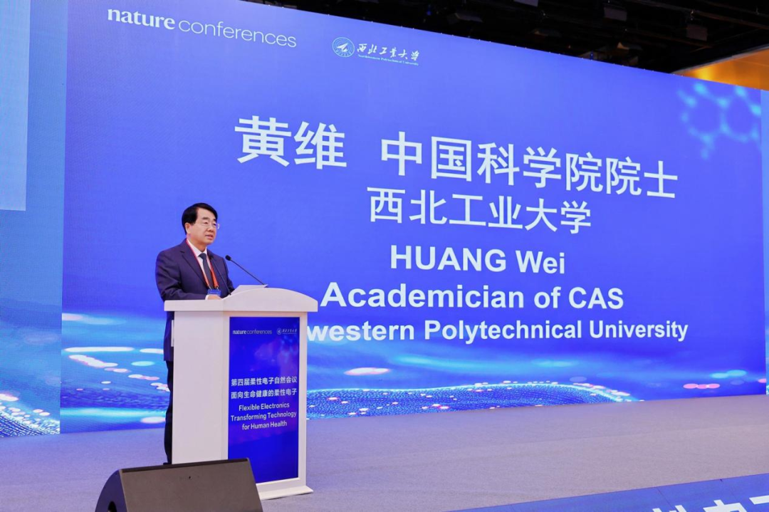 黄维院士代表组委会对海内外专家学者的到来表示欢迎,他指出,柔性电子技术突破传统刚性电子器件局限,已成为生命健康领域的变革性力量,目前已在无创体征监测、精准靶向治疗、快速疾病筛查等方面实现实际应用。他希望,未来柔性电子技术将与多领域深度融合构建智能健康管理体系,可降解材料的应用也将为精准医疗和再生医学提供核心支撑,成为全球医疗卫生事业发展的核心支柱。