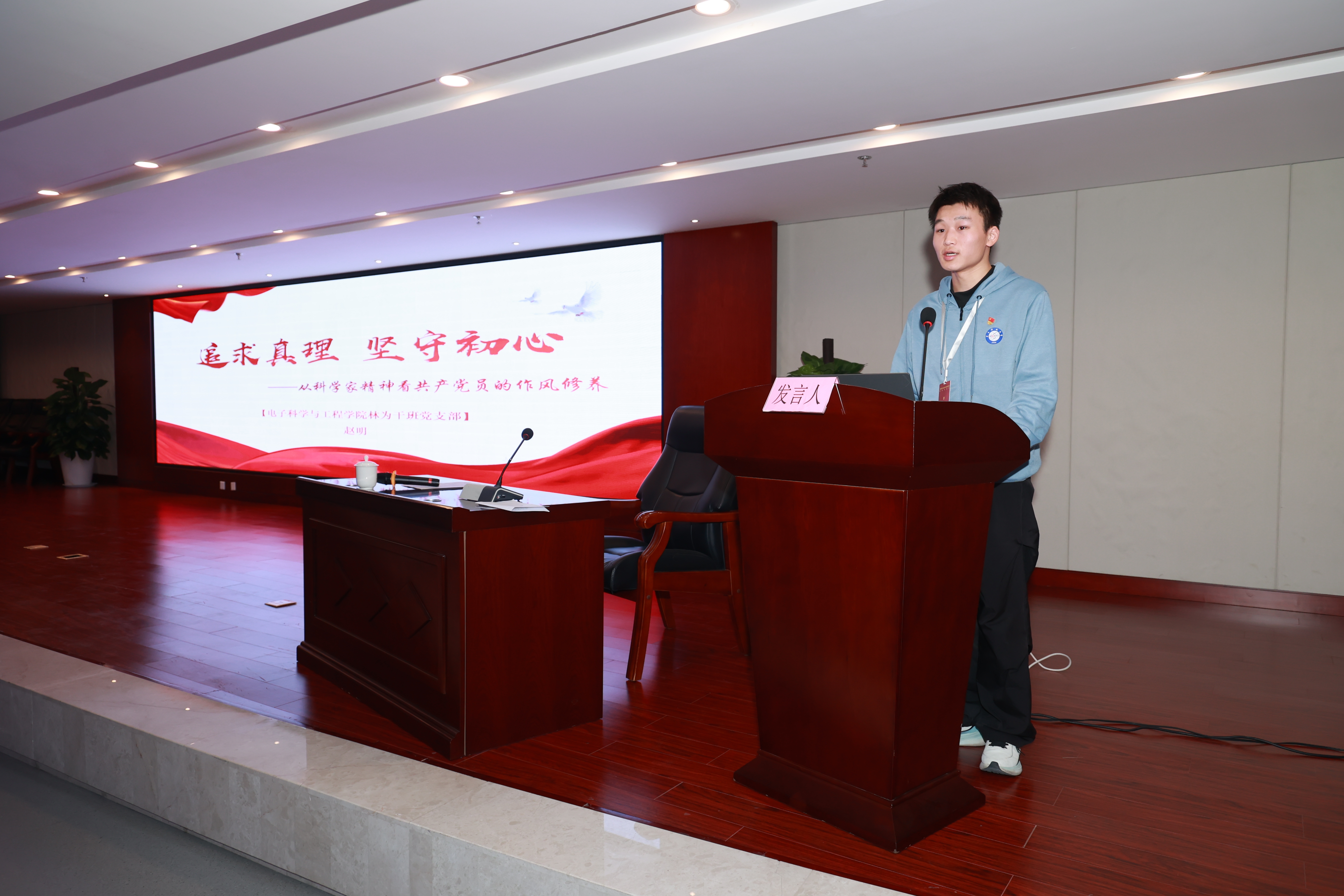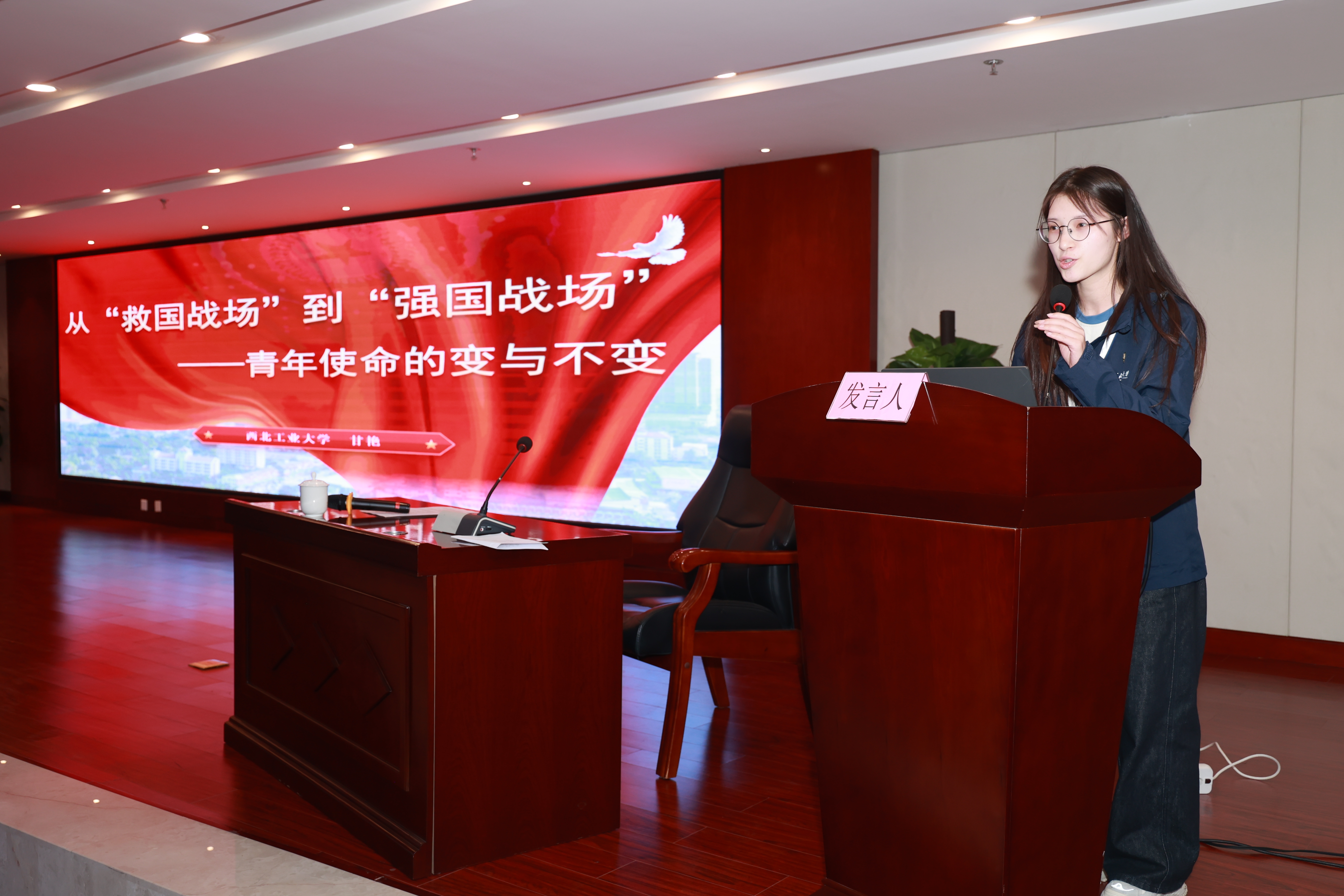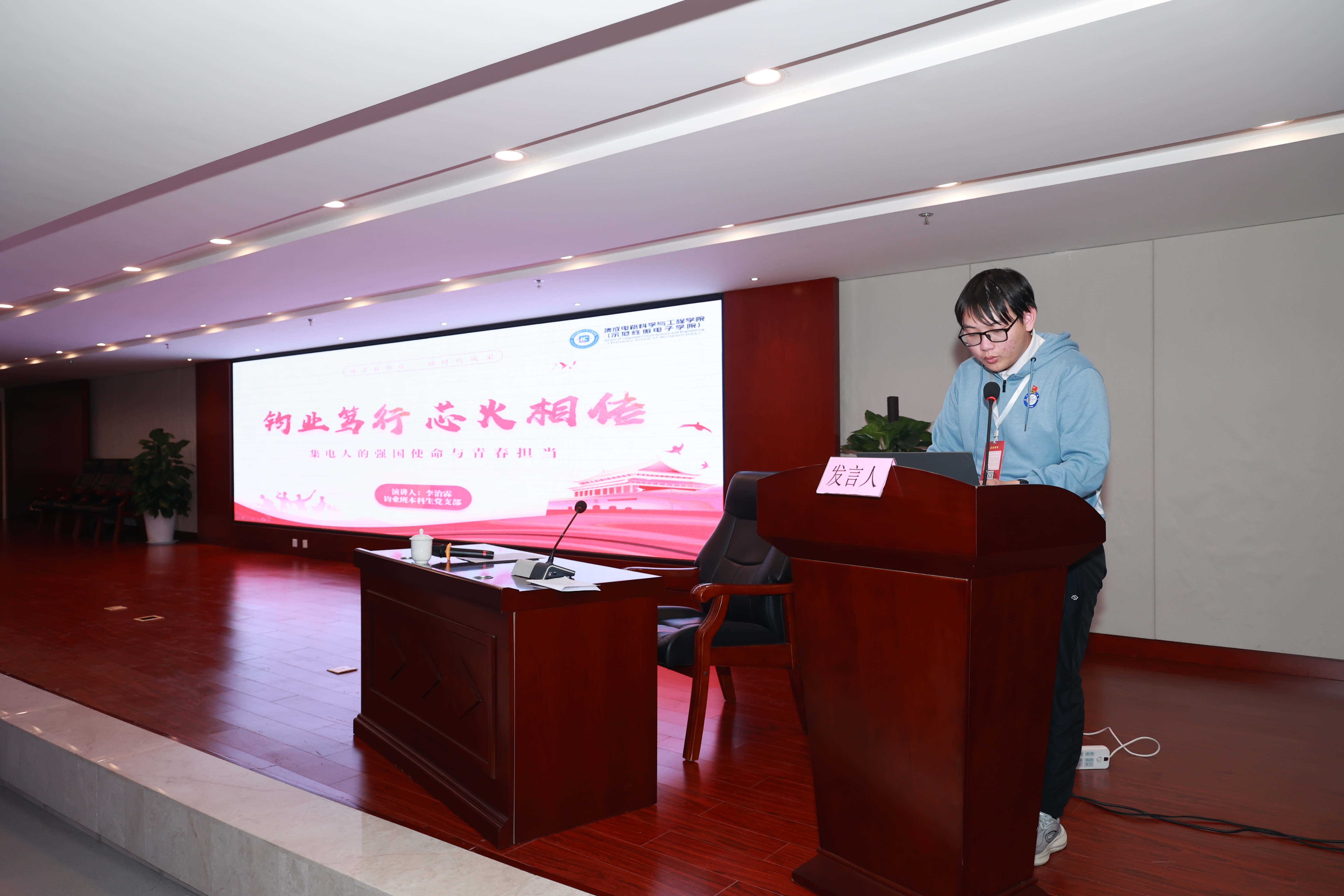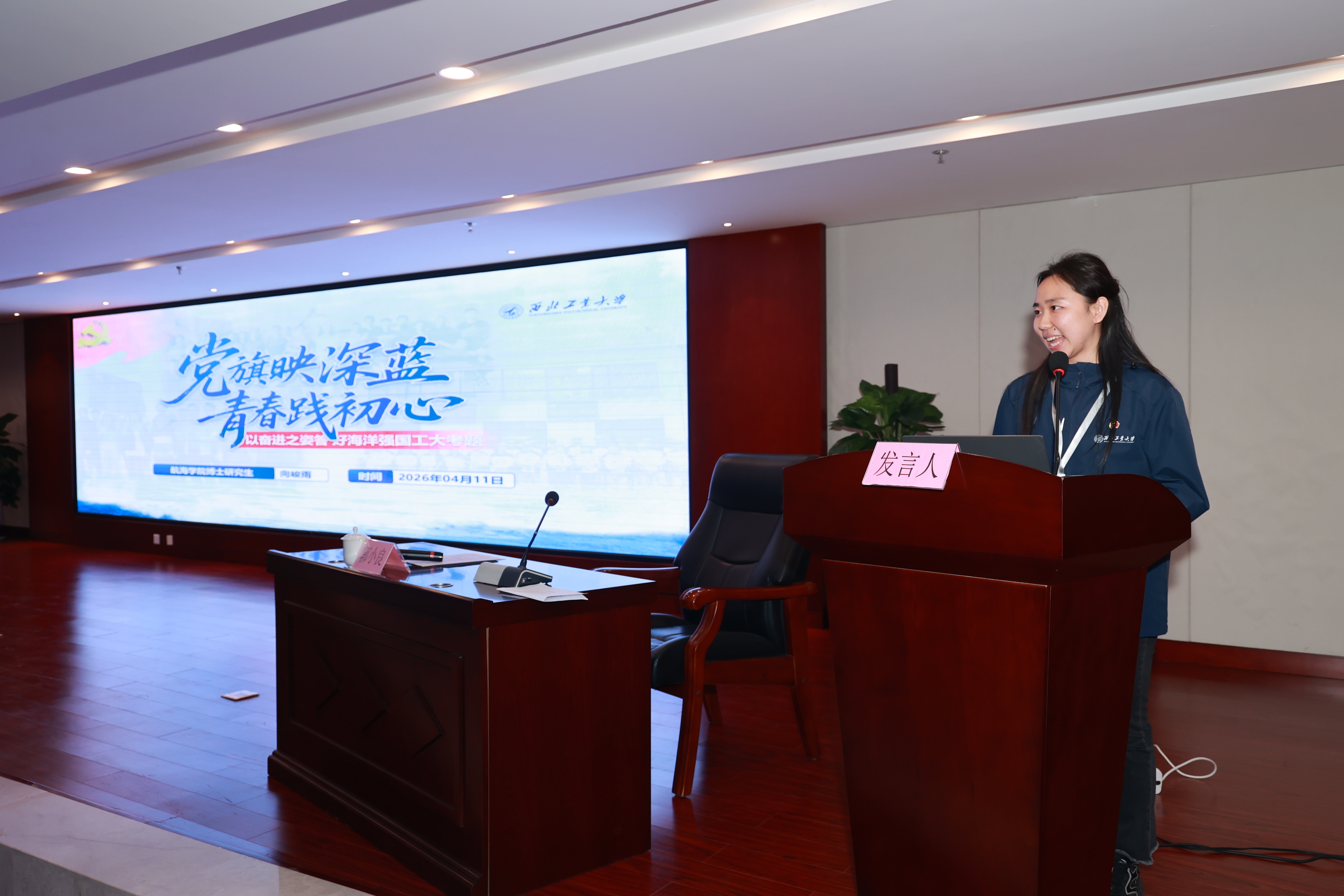 在学生党员示范微党课环节,两校学子依次登台,围绕专业背景与时代使命开展分享交流。西北工业大学学子立足“三航”报国使命,电子科技大学学子聚焦电子信息前沿方向,从不同专业视角诠释共同的时代担当。西北工业大学学生党员向峻雨讲述海洋强国使命,甘艳讲述青年使命的历史传承;电子科技大学学生党员赵明阐释科学家精神内涵,李治霖展现“芯火相传”的强国担当。跨学科、跨地域的交流引发强烈共鸣,充分展现了两校青年党员服务国家战略、勇担时代重任的使命追求。