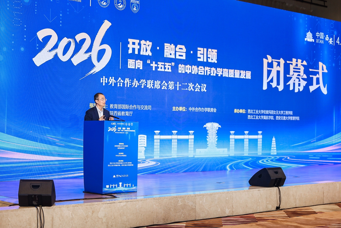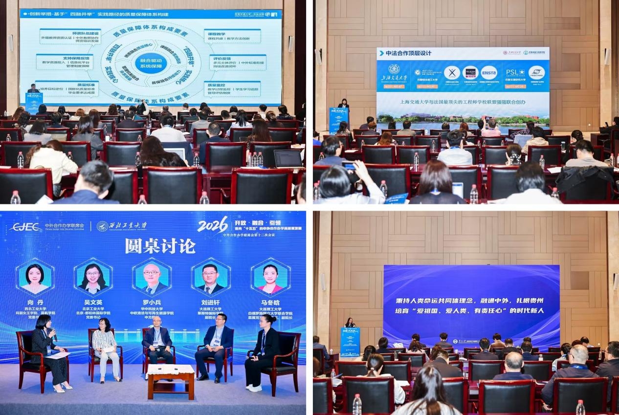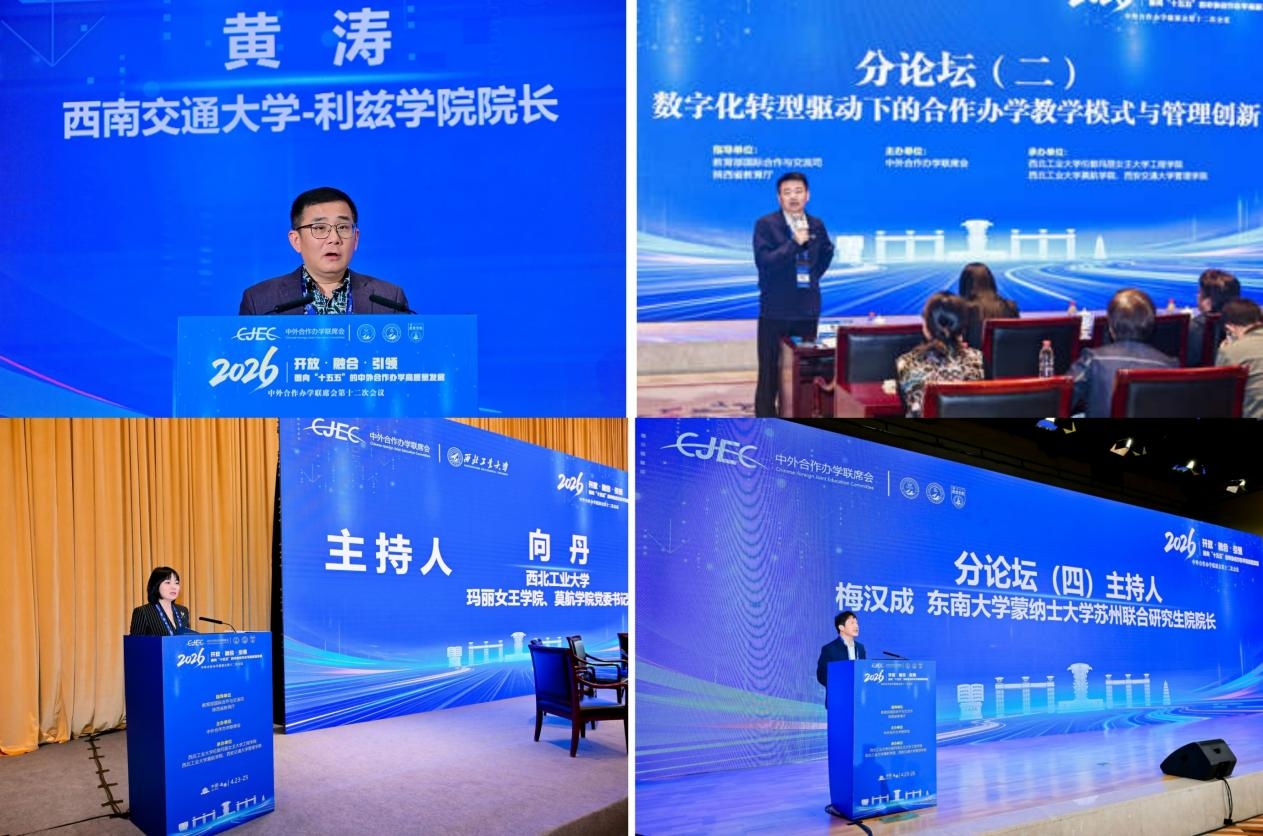 4月23日至25日,中外合作办学联席会第十二次会议在陕西西安举行。本次会议由教育部国际司指导,中外合作办学联席会主办,西北工业大学伦敦玛丽女王大学工程学院、莫航学院与西安交通大学管理学院联合承办。会议以“开放·融合·引领:面向‘十五五’的中外合作办学高质量发展”为主题,共同探讨新时代中外合作办学发展新路径。