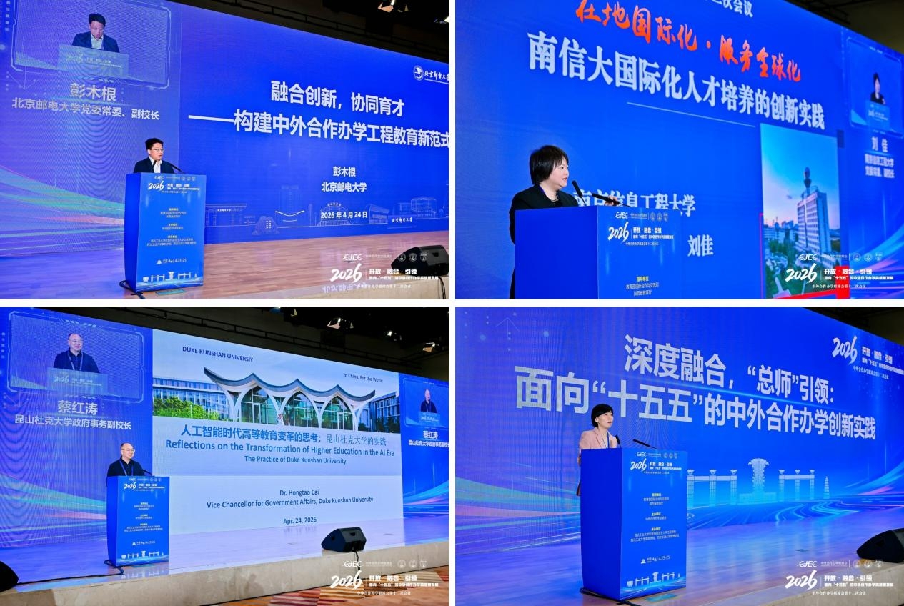 主题发言环节由西北工业大学玛丽女王学院、莫航学院党委书记向丹主持。四位中外合作办学院校代表作主题报告。北京邮电大学副校长彭木根以“融合创新,协同育人——构建中外合作办学工程教育新范式”为题作分享;南京信息工程大学党委常委、副校长刘佳聚焦“在地国际化·服务全球化 南信大国际化人才培养的创新实践”展开交流;昆山杜克大学政府事务副校长蔡红涛结合“人工智能时代高等教育变革的思考:昆山杜克大学的探索与实践”探讨新路径;西北工业大学伦敦玛丽女王大学工程学院、莫航学院院长范晓丽围绕“深度融合,‘总师’引领:面向‘十五五’的中外合作办学创新实践”分享办学经验。