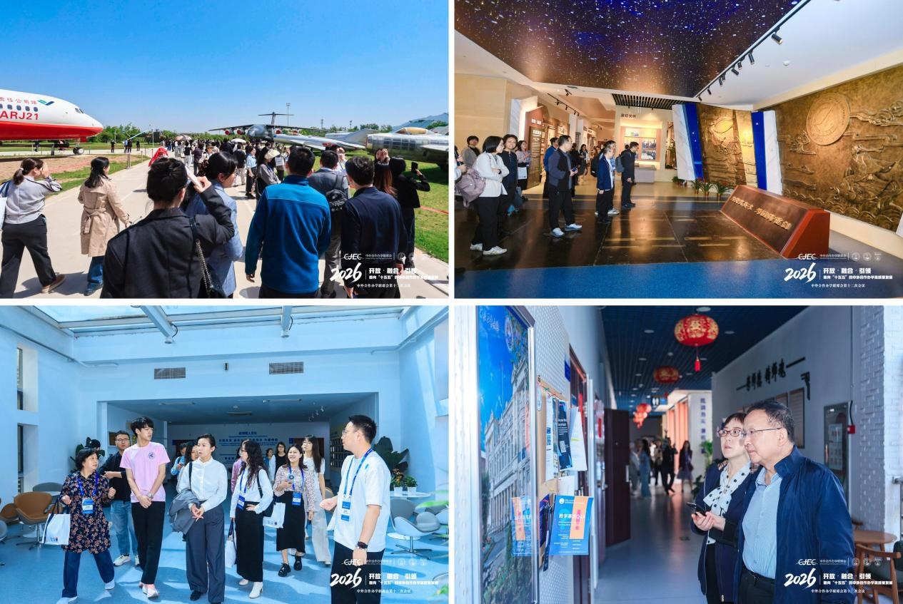 25日上午,与会代表前往西北工业大学长安校区进行实地调研,参观了校史馆、飞机展示区及相关中外合作办学机构,深入了解了学校的办学历史与国际化建设成果。